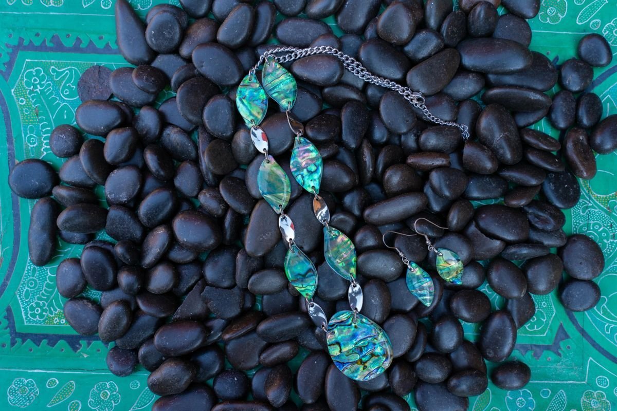 Enchanting Abalone and Mother of Pearl Free-Form Necklace and Earrings Set